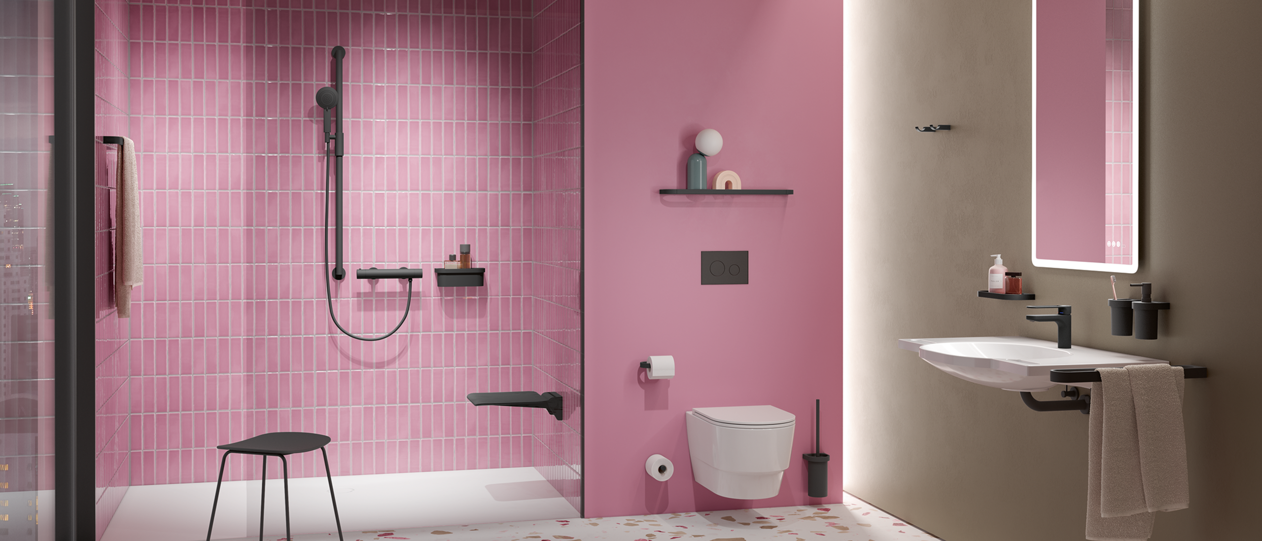 Breite Türen und großzügige Bewegungsflächen erleichtern es, Kinder sicher zu tragen oder einen Kinderstuhl zu nutzen. Gleichzeitig bieten sie älteren Familienmitgliedern mit einem Rollator oder anderen Mobilitätshilfen den nötigen Platz und Komfort. Smarte Technologien wie berührungslose, sensorgesteuerte Armaturen erhöhen zudem die Bedienfreundlichkeit und Hygiene.