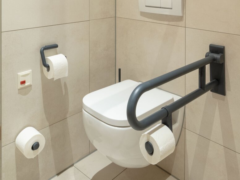 The HEWI washbasins with integrated accessibility are particularly useful. The shallow washbasin is accessible from underneath and practical grab rails provide reliable support.These can also be used as towel rails.