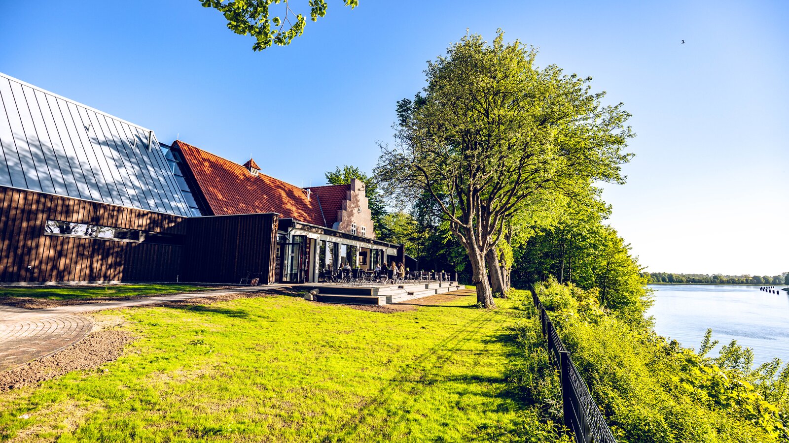 AX5 carefully renovated the main building, which is protected as a unique cultural monument, and rebuilt it to meet the standards of a modern restaurant. The large hall in the main building was preserved and fixtures from more recent times were removed. AX5 had an extension from the 1960s demolished and replaced it with a new extension that also houses the sanitary facilities. The new building is designed as a contemporary wooden structure, which was added to the gable end of the hall.