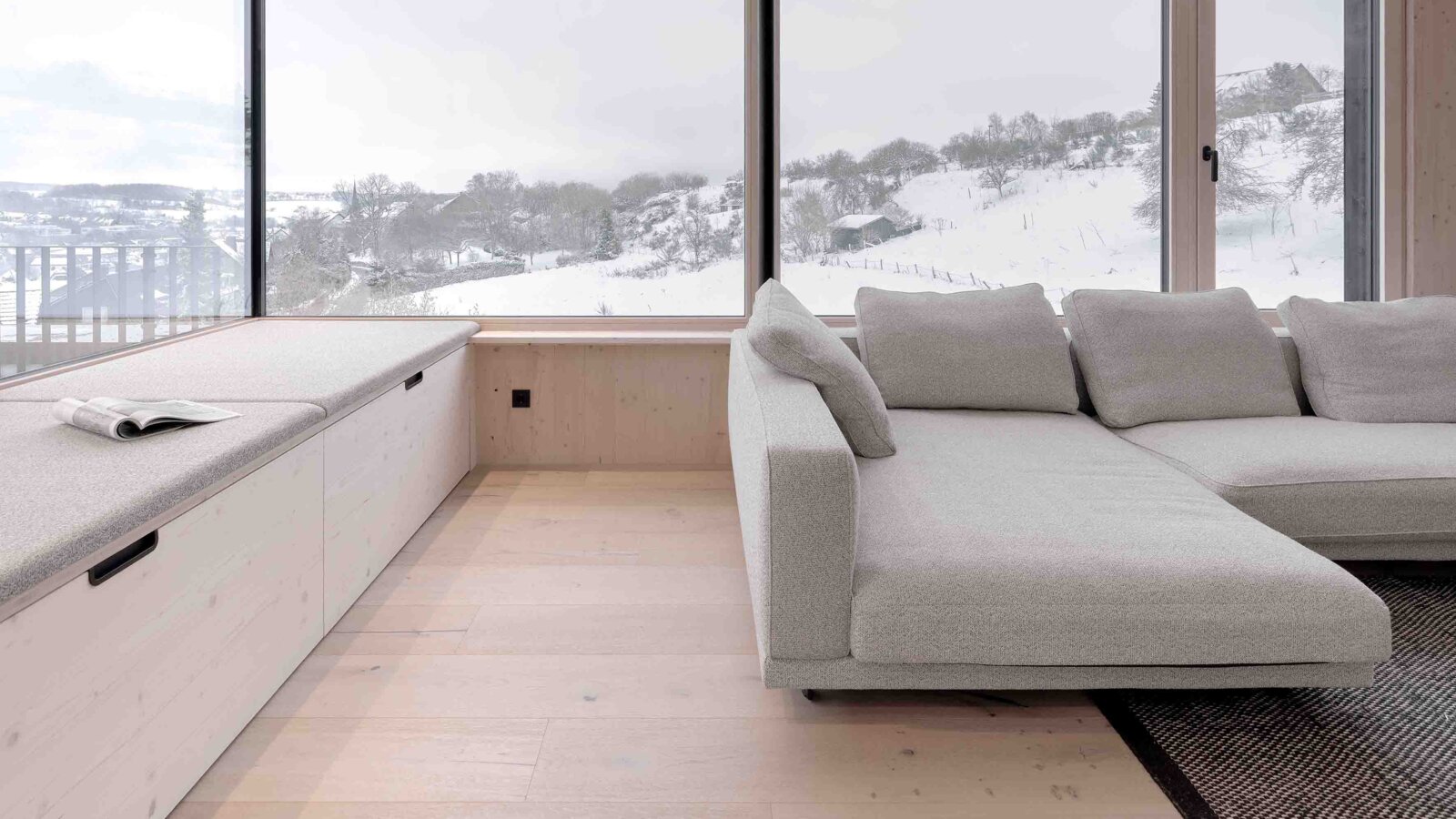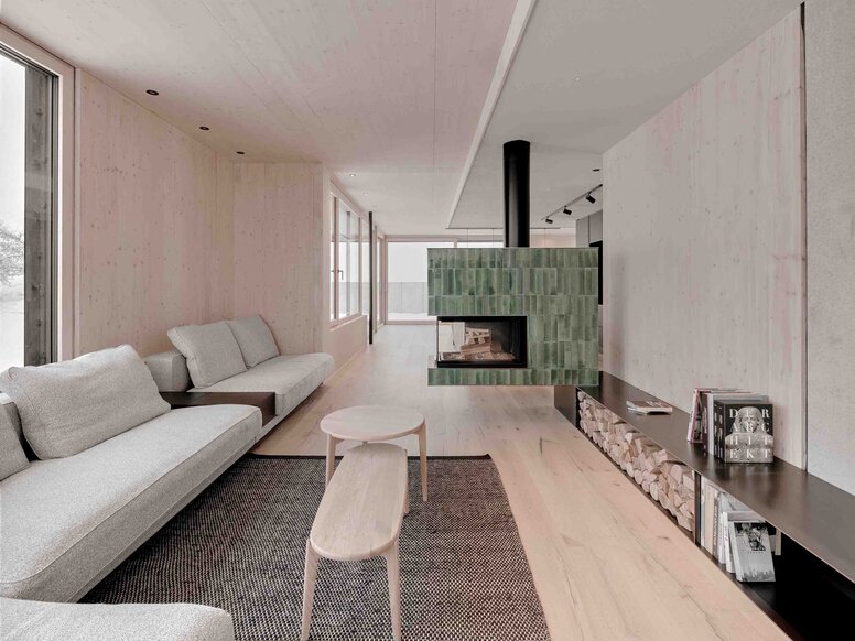 The architectural concept is based on the dialogue of the materials. Exposed concrete as a foundation is durable, load-bearing and robust. This contrasts with the warm wood of the upper floors, which symbolises lightness, openness and a closeness to real, everyday life. “These contrasts are not a contradiction: they are the real strength of the house,” emphasises Schönauer. In this interplay, an architecture unfolds that radiates both solidity and transparency. Large-format glass panes, precisely positioned vistas and a window seat with a panoramic view interweave the interior closely with the landscape. Inside and outside form a flowing continuum