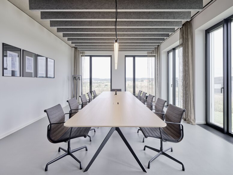 The architects and clients also paid particular attention to a highly efficient thermal building envelope and energy-saving building technology. For example, the building makes clever use of existing heat, exceeding the requirements for a KfW 40 efficiency house. Peak shaving - the buffering of electricity peaks using photovoltaics and electricity storage - allows a significant proportion of the company's own energy requirements to be recovered and used directly for the production and administration areas.