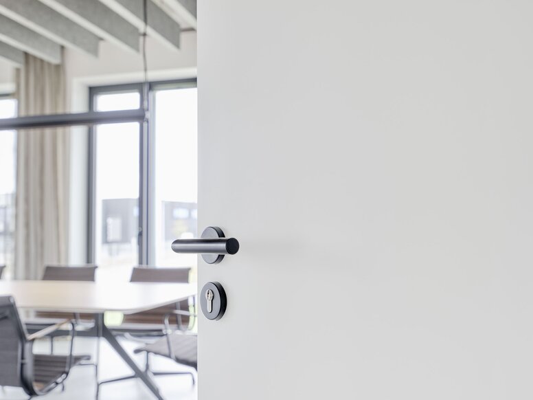 The architects wanted to work with the same continuous and stringent design for the interior of the building as for the entire building. HEWI offered them the right range of products for this purpose, suitable for both the office area and the production hall. “The uniform, aesthetic style of the products convinced us,” reports Alexandra Röing, known as Nölke. “The fact that HEWI produces in Germany was also a factor that encouraged us to take a closer look at their product range.” The architect was impressed by the wide range of products on offer, including lever and window handles with an iconic look, as well as a complete assortment of sanitary accessories. These products are both robust enough for industrial use and elegant enough for administrative buildings. The decision to use only HEWI products was quickly made.