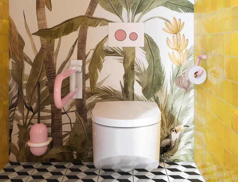 A well-planned children's bathroom not only takes ergonomic requirements into account, but also appeals to children emotionally. Colours, shapes and materials influence how safely and independently children move around the room. The Barbie™ x HEWI collection HEWI picks up on this idea and implements it with a design that is tailored to the child's experience.