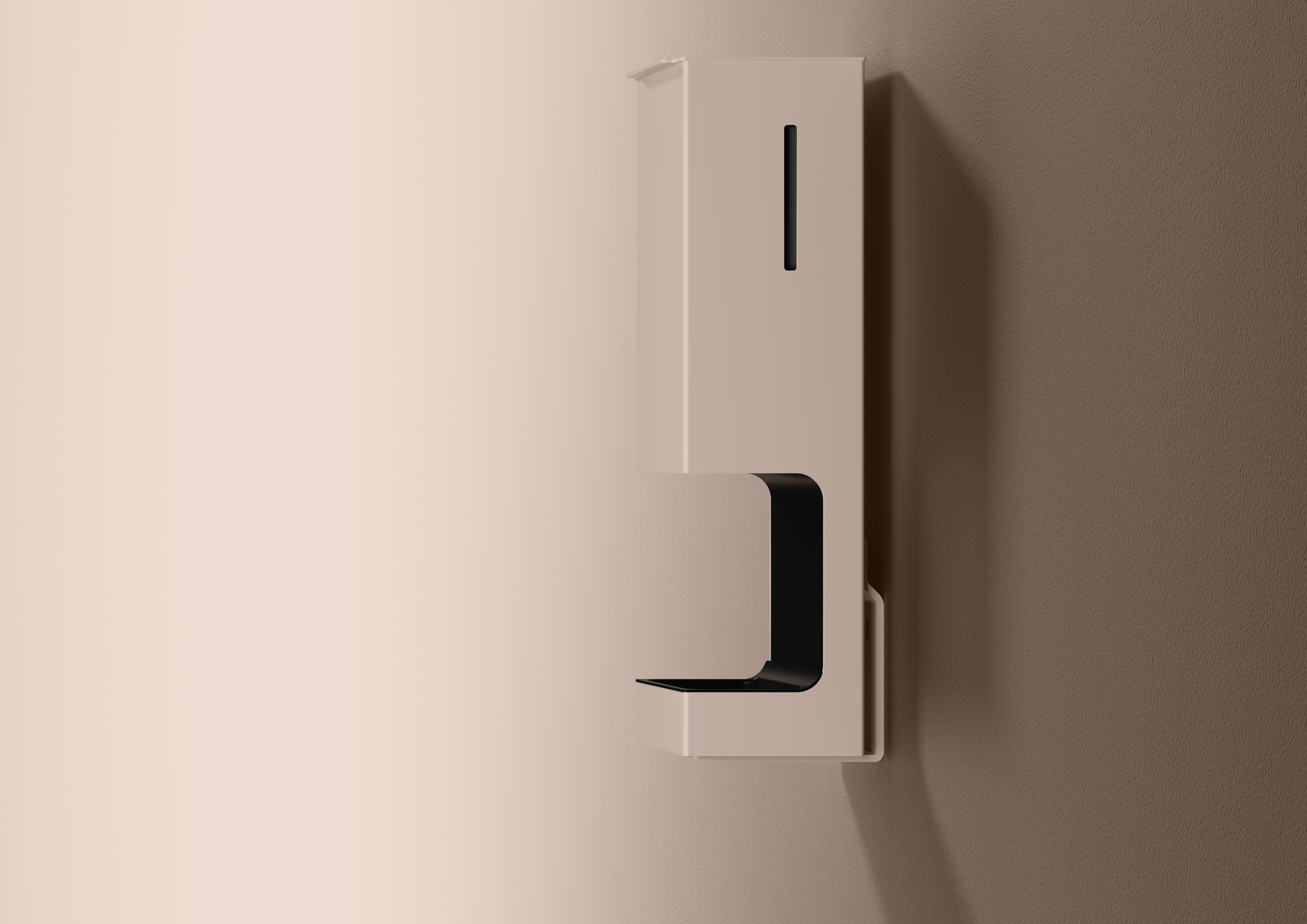 The HEWI dispenser models from System 900 are available in both manual and electronic form. The sensory design enables users to disinfect their hands without touching. When the built-in sensor system is activated, the disinfection area lights up and supports intuitive operation. The product is dispensed as a spray and allows for better distribution on the skin. The presetting of the output quantity is particularly resource-saving. It counteracts a high consumption of disinfectant.