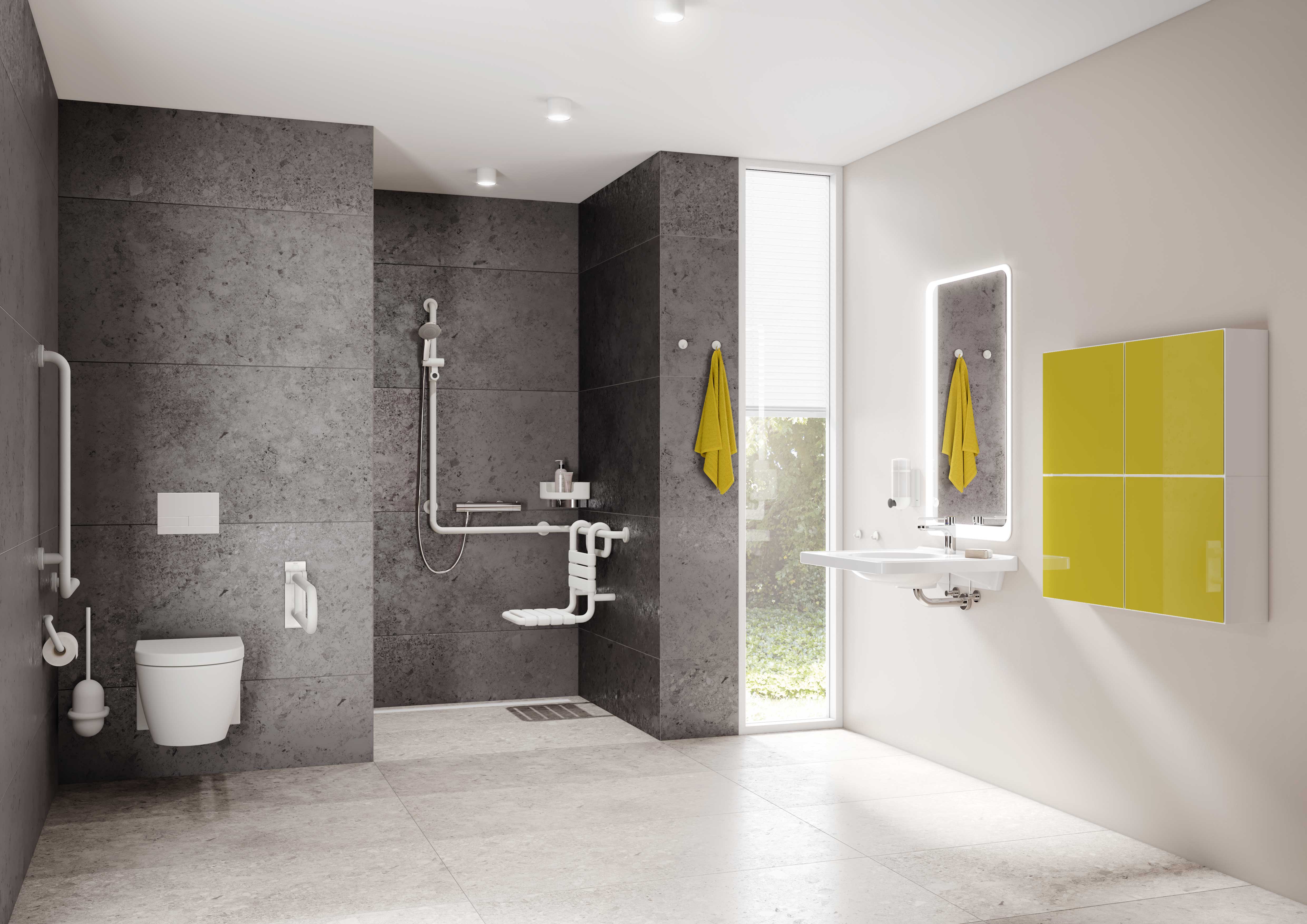 The supposedly accessible functional product gives the sanitary space in hospitals, senior citizens' or nursing homes, as well as at home, a homely design alternative.