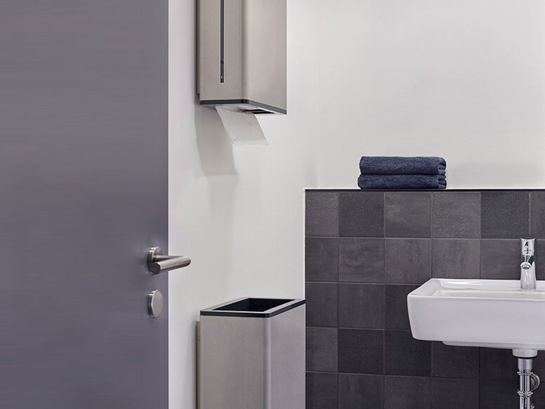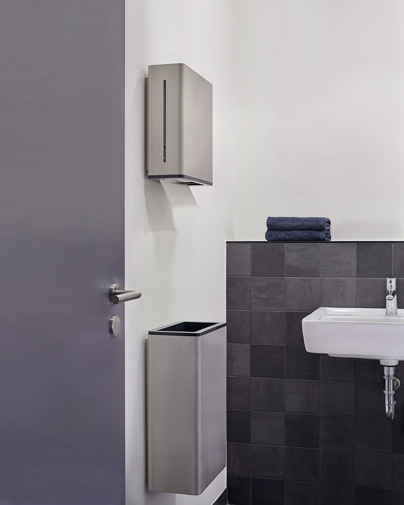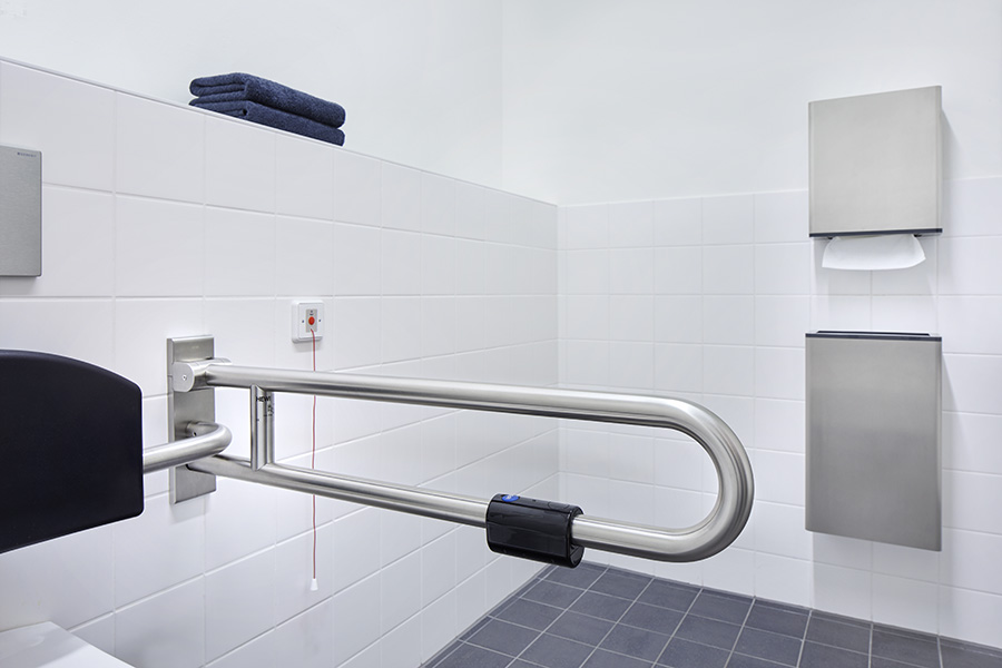 The architects chose Range 805 from HEWI for the barrier-free sanitary rooms. The reduced design of Range 805 enables a clear room setting. Right down to the smallest detail, this Range shows that good design and intelligent functions form a single unit. For example, the functional area of the dispenser systems made of high-quality polyamide is colour-contrasting.