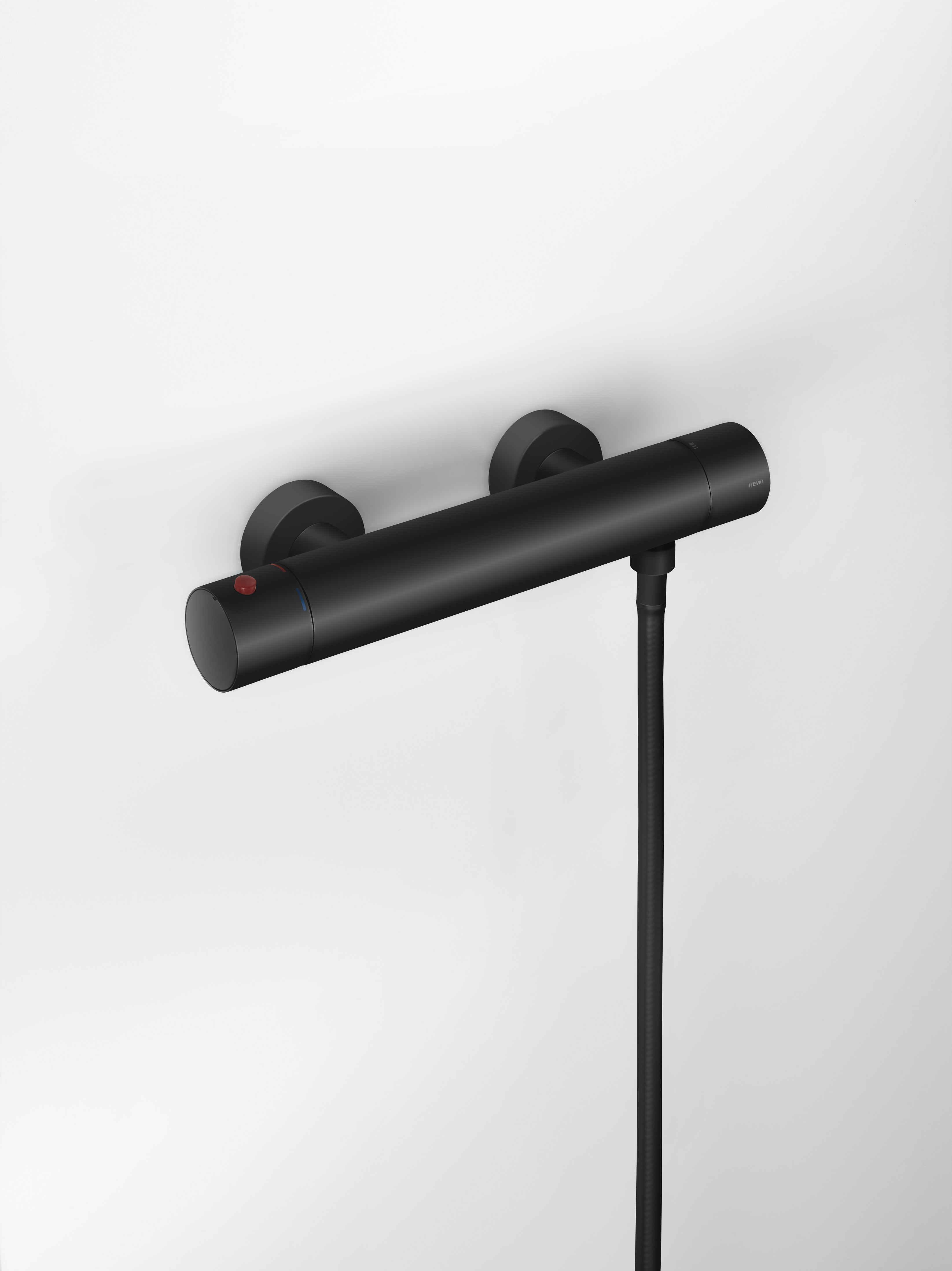 HEWI fittings impress with their design and quality. To increase the design diversity, fittings and HEWI shower thermostats in black matt now complement the product range. In this way, colour concepts can be supported or refined with black accents. The matt finish is achieved by a special finishing process which creates a particularly deep black matt colour. The powder coating. In addition to a noble appearance, it also offers the highest anti-corrosion protection and thus guarantees the durability of the products.
