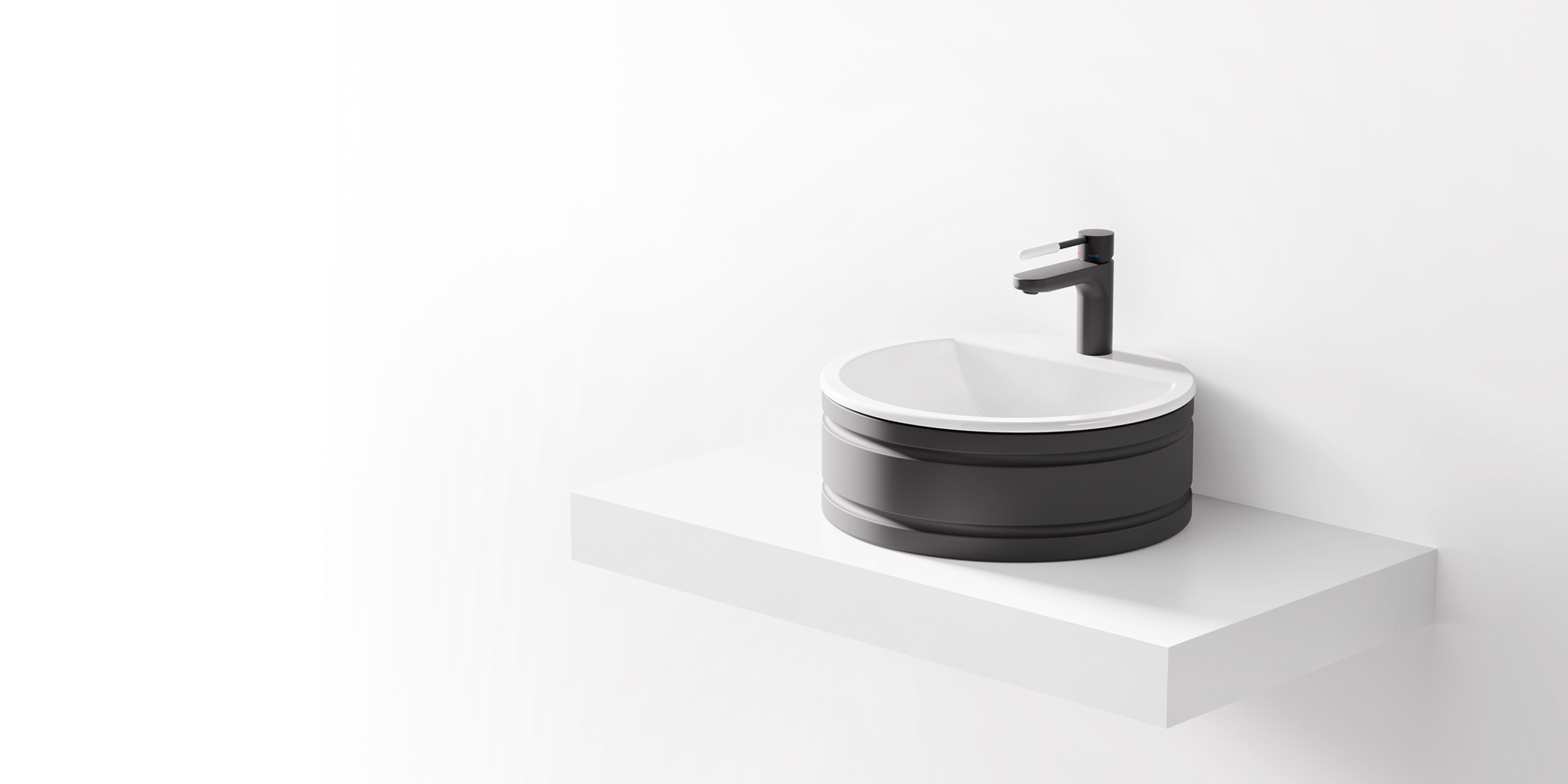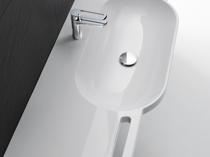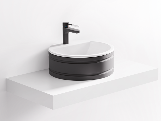 The design's white basin interior can be combined with a glossy white, glossy grey or matt black exterior finish.
