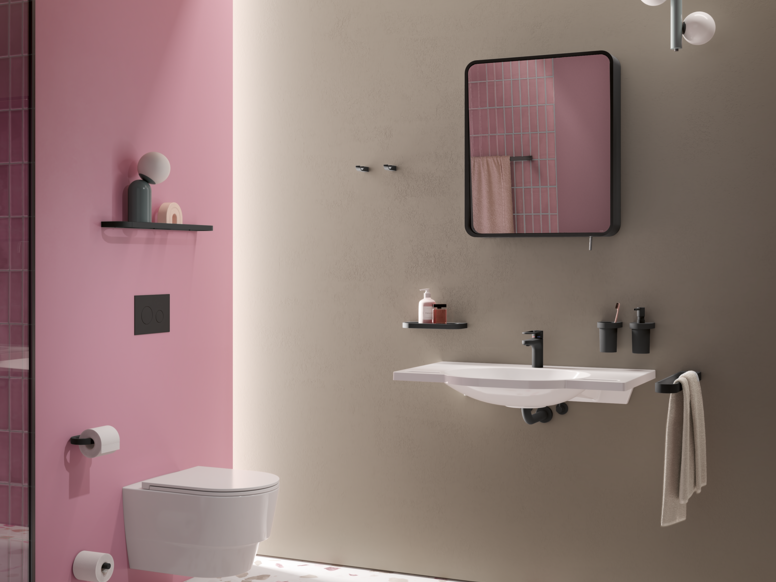 HEWI brengt nog meer lichtheid in de badkamer met de nieuwe System 800 kleurvarianten. De accessoires zijn uitgebreid met haptisch aangename, gepoedercoate oppervlakken in mat zwart en mat wit. De nieuwe oppervlakken vormen een aanvulling op de bestaande chromen oppervlakken en worden met name aanbevolen voor de hotel- en thuissector. Deze nieuwe opties breiden de toch al veelzijdige ontwerpmogelijkheden van System 800 uit, met accessoires in mat zwart en mat wit die nieuwe impulsen geven aan de wastafel, het toilet, de douche en het bad. Naast de oppervlakken biedt HEWI ook inzetstukken van fijn, gesatineerd kristalglas of hoogwaardige polyamide voor nog meer creatieve opties.